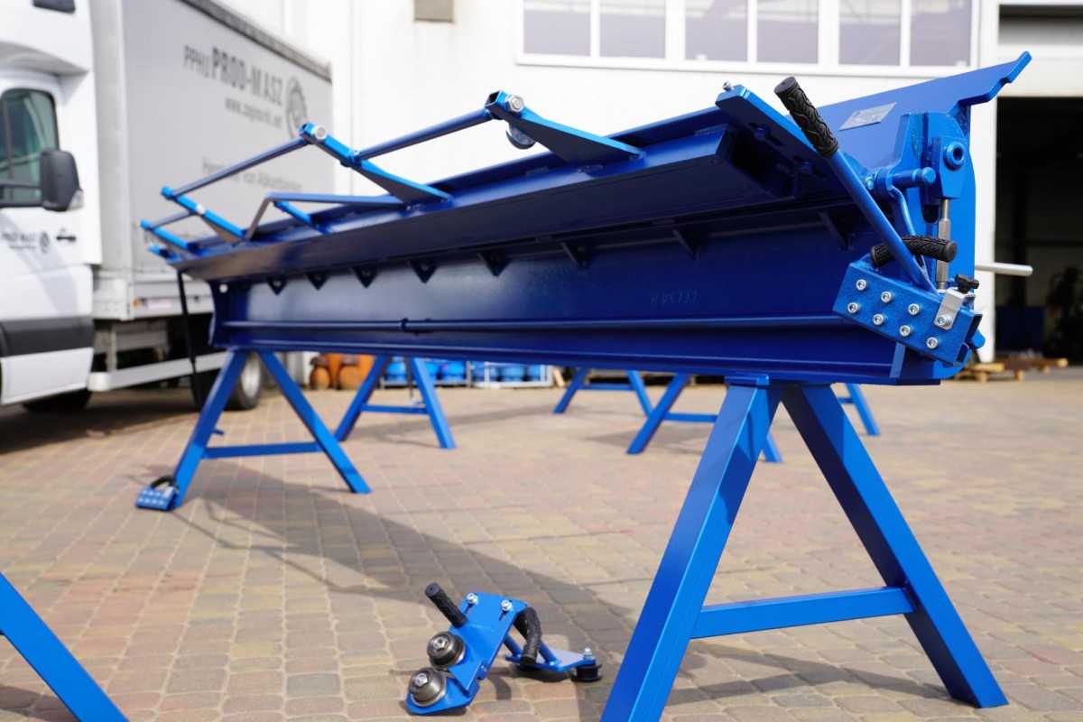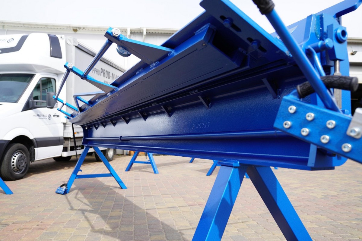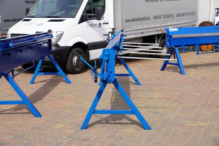 A professional folding machine with 4.14 m working area, directly from the manufacturer Prod-Masz. Possible sheet thickness to be processed: sheet steel up to 0.7 mm, bending radius: up to 160° to create a fold. The two cheeks of the folding bench are CNC-milled from solid material and ensure a long service life. The folding bench is made of solid material, the weight of the machine is 700 kg !!!